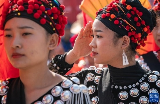 3月2日,景頗族姑娘小琳在目瑙縱歌現(xiàn)場起舞。
