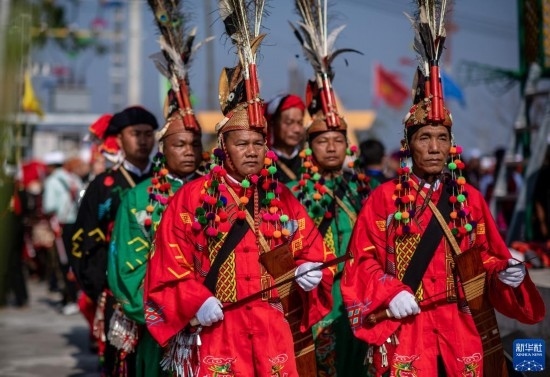 當日,云南省德宏傣族景頗族自治州瑞麗市2023年目瑙縱歌節(jié)在位于中緬邊境的勐秀鄉(xiāng)戶瓦山寨開幕。