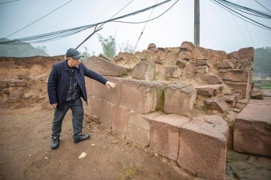 2月9日,在重慶合川釣魚城遺址,重慶市文物考古研究院副院長(zhǎng)袁東山在介紹新發(fā)掘出的位于類似闕臺(tái)建筑基址上的宋井。新華社記者 黃偉 攝