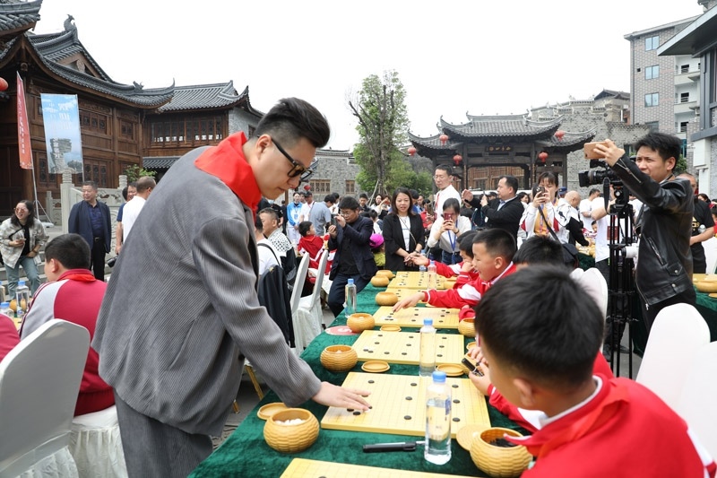 人民網(wǎng)銅仁5月15日電 (記者李乃妍)5月14日,第十屆中國女子圍棋甲級聯(lián)賽希望教室捐贈儀式和指導棋活動在銅仁市梵凈書院進行,中國圍棋協(xié)會主席林建超等出席活動并發(fā)言。世界冠軍古力、孔杰、馬曉春等與當?shù)匦∑逋轮笇濉?/p>