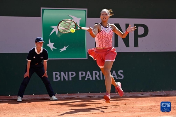 5月28日,鄭欽文在比賽中回球。當(dāng)日,在2023法國(guó)網(wǎng)球公開賽女子單打首輪比賽中,中國(guó)選手鄭欽文以2比0戰(zhàn)勝斯洛文尼亞選手齊丹塞克,晉級(jí)第二輪。新華社發(fā)(朱利安·馬蒂亞攝)