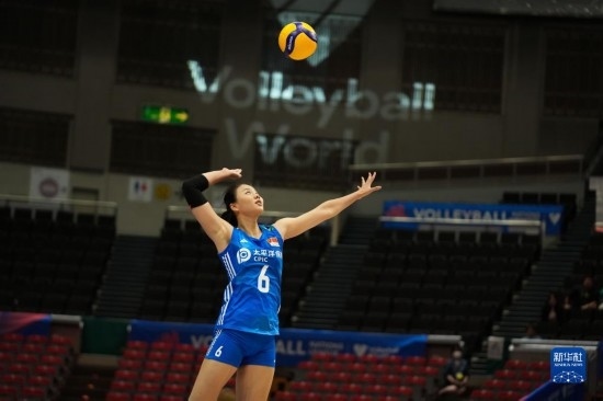 6月2日,中國(guó)隊(duì)球員李盈瑩在比賽中傳球。新華社記者 張笑宇 攝
