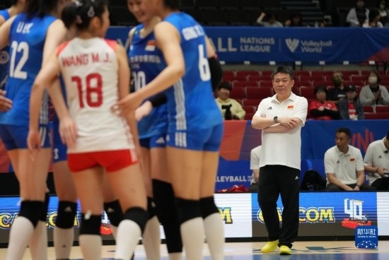 6月2日,中國(guó)隊(duì)主教練蔡斌(右)在場(chǎng)邊觀賽。新華社記者 張笑宇 攝