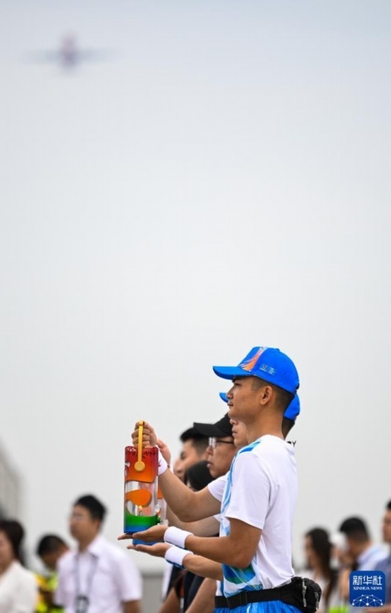 6月8日,在成都天府國際機(jī)場,“中國民航英雄機(jī)長”劉傳健執(zhí)飛護(hù)送成都大運(yùn)會(huì)火炬火種的航班。新華社記者 王曦 攝