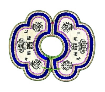 依據(jù)工藝、地域、民族的不同,織繡印染單元分為織繡、印染和少數(shù)民族工藝三類,品種豐富,工藝精美,兼顧手作與機制。在織繡中,南京云錦織造復(fù)雜,圖案華美;五彩繽紛的成都蜀錦以染色熟絲織造,質(zhì)地堅韌;蘇州漳緞以漳絨織造,富麗華貴;蘇州緙絲則采用通經(jīng)斷緯工藝與博古圖案,極盡工巧。刺繡展品以繡有吉祥圖案的日用品為主,如山西“打子繡錢袋”繡獅子滾繡球圖案,寓意好事不到頭;蘇州“金地拉鎖繡扇套”繡孔雀開屏與鳳求凰圖案,祈愿美好愛情。藍印花布產(chǎn)地多,應(yīng)用廣,多采用吉祥圖案,既有祈愿幼兒健康成長的“虎戲五毒紋肚兜”“麒麟送子圖圍嘴”,亦有寓意平安富貴的“牡丹花瓶紋門簾”,還有“勞動生產(chǎn)”雙喜藍印花布褥面,倡導(dǎo)“女紡織家存千尺布,男耕田倉有萬石糧”。在少數(shù)民族工藝品中,“苗族刺繡花邊百褶裙”以黑色土布飾五彩裙擺,展現(xiàn)著苗族婦女“善歌舞,巧織繡”的傳統(tǒng)。
