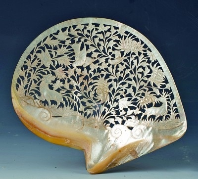 雜項包括景泰藍、錫器、銀器、竹編、草編、木雕、貝殼鏤雕、泥塑等多個門類,名品與新品琳瑯滿目。1951年至1952年,常沙娜在林徽因的指導(dǎo)下設(shè)計的北京景泰藍“和平鴿紋盤”“飛天紋盤”等作品,不僅富有敦煌特色,而且探索了傳統(tǒng)工藝設(shè)計的轉(zhuǎn)型之路。四川自貢名家龔玉璋的竹絲扇工藝精湛,圖像富有文人雅趣。廣州珍珠殼鏤雕成對展示,造型雅致,色澤瑩潤,工藝精細,裝飾華美。來自天津、潮州等地的木雕糕模造型喜慶,寓意吉祥。江蘇無錫惠山泥人的代表作“大阿?!蔽⑿F坐,迎祥納福。造型小巧的陜西泥哨多為黑地彩繪,形象質(zhì)樸,神情生動,上有兩個小孔,吹之可發(fā)聲。