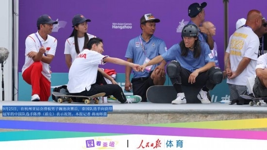亞運(yùn)賽場(chǎng)不僅有激烈的競(jìng)爭(zhēng),更有真誠(chéng)的交流。杭州亞運(yùn)會(huì)賽場(chǎng)內(nèi)外,友誼之花處處綻放。覃海洋、閆子貝握手慶祝包攬男子100米蛙泳冠亞軍,新加坡隊(duì)選手康占斌向柯潔贈(zèng)送紀(jì)念徽章以示友好,泰國(guó)選手和陳燁碰拳表示祝賀……亞運(yùn)會(huì)既是運(yùn)動(dòng)員們切磋技術(shù)、較量能力的舞臺(tái),也搭建起了溝通的橋梁,充分印證了杭州亞運(yùn)會(huì)“心心相融,愛(ài)達(dá)未來(lái)”的口號(hào)。