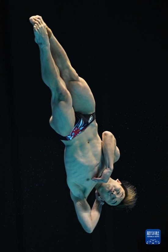7月18日,中國(guó)選手鄭九源在三米板項(xiàng)目比賽中。