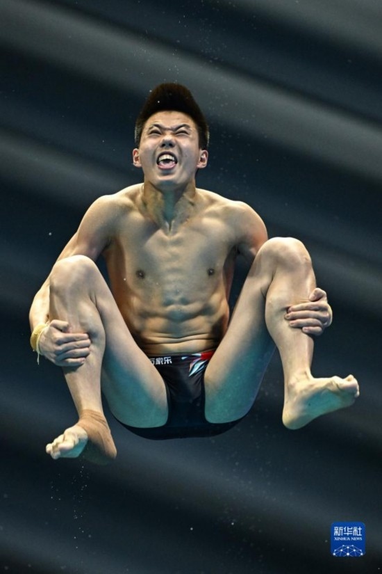 7月18日,中國(guó)選手鄭九源在單人三米板比賽中。