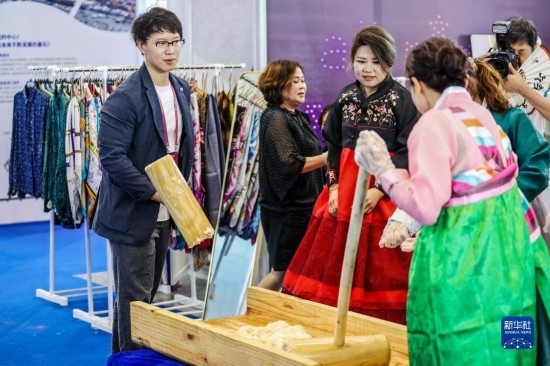 7月28日,參觀者在博覽會(huì)上選購(gòu)韓國(guó)商品。