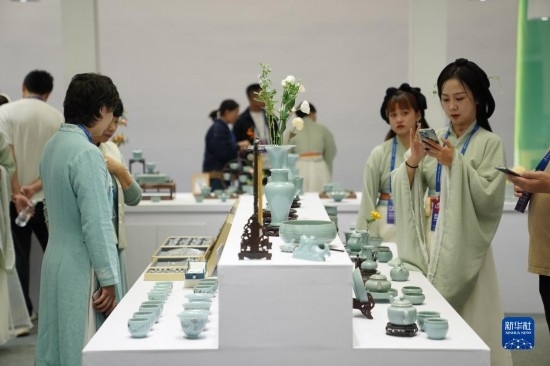 10月18日,人們在瓷博會汝窯展臺參觀。