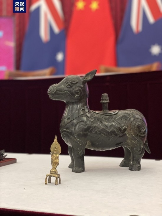本次歸還的文物包括潛龍化石、鎏金觀音銅像和彩繪陶制人物騎馬俑。經(jīng)初步鑒定,潛龍化石屬于晚侏羅世到早白堊世的恐龍化石,而觀音銅像和騎馬俑的歷史可追溯到唐代甚至北朝,具有珍貴的歷史文化價(jià)值。同時(shí),澳大利亞國(guó)家美術(shù)館還另外向中國(guó)政府捐贈(zèng)了一件牛形的盛酒禮器——“犧尊”。我國(guó)文物專(zhuān)家通過(guò)對(duì)文物基本信息和圖片的判斷,鑒定這件“犧尊”用途為酒器,是明清或近代的仿古文物藝術(shù)品。