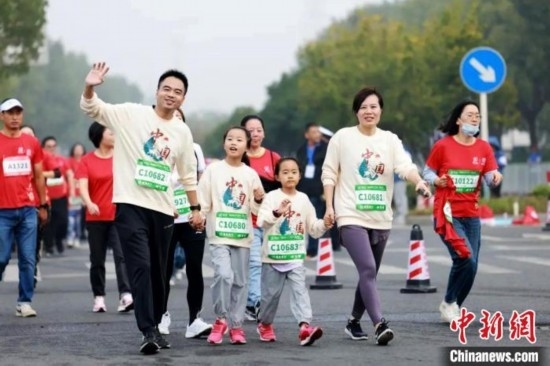 馬鞍山半程馬拉松比賽開設家庭親子跑項目。張強 攝