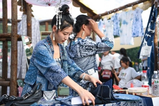 榕江縣古州文化旅游投資開發(fā)(集團)有限責任公司總經(jīng)理孫國秀說,“村超”的火爆帶火了相關(guān)產(chǎn)業(yè)?!皟H全縣開發(fā)的藍染‘村超’文創(chuàng)產(chǎn)品就有200多款,包括T恤、布袋、球隊隊標等?!?/p>