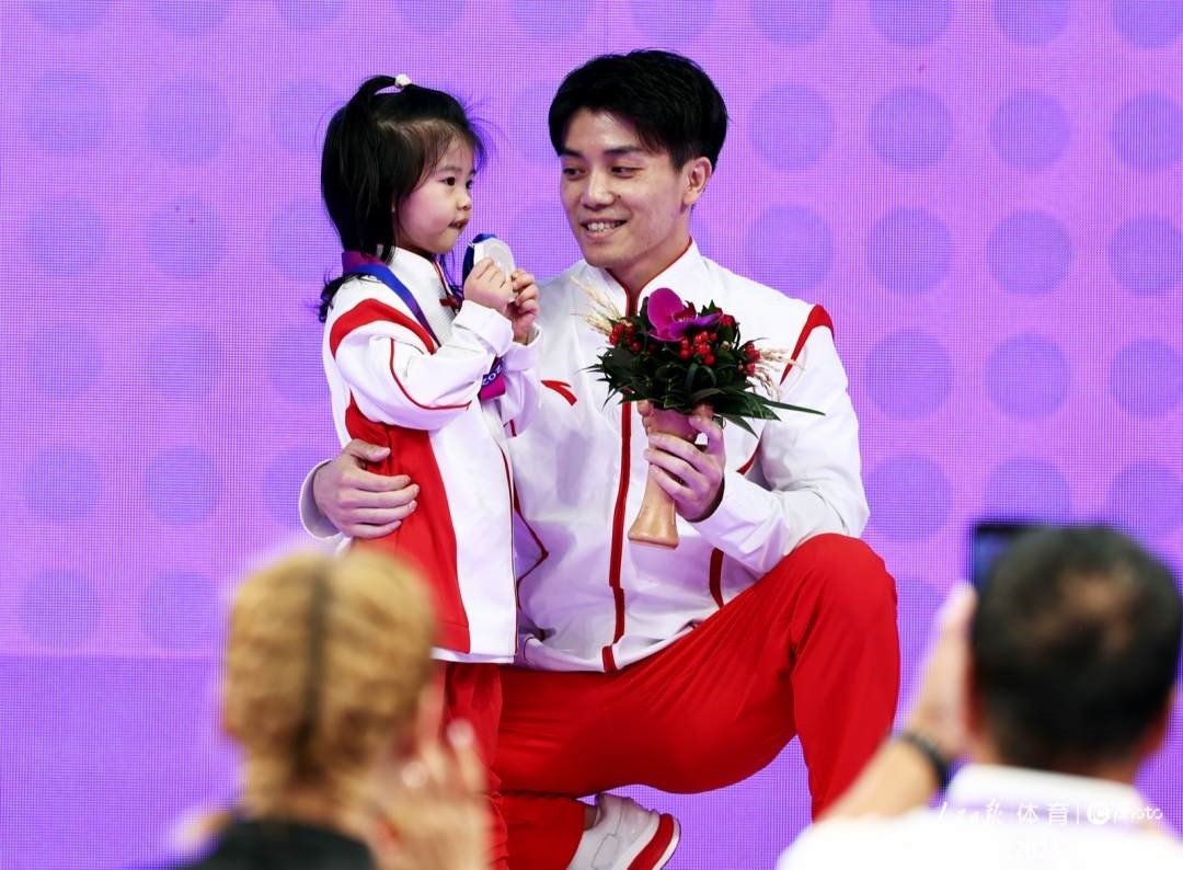 林超攀與女兒一同領(lǐng)取獎牌