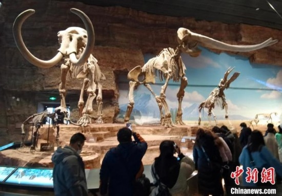 1月3日,中國古動物館(保定自然博物館)展出的草原猛犸象化石骨架。呂子豪 攝