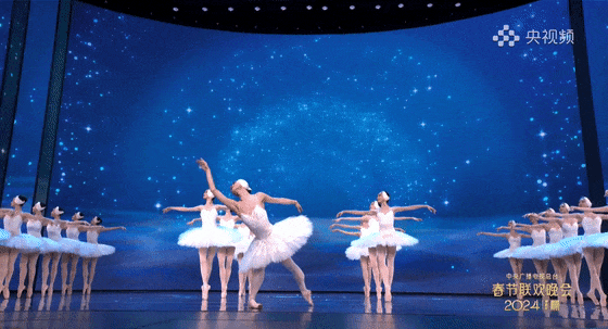 在舞蹈的后半部,來自上海芭蕾舞團的演員們再現(xiàn)了真正的《天鵝湖》,當(dāng)呆萌碰撞優(yōu)雅,一出丑小鴨與白天鵝的故事妙趣橫生。盡管這些專業(yè)的芭蕾舞演員已經(jīng)演繹了數(shù)百場《天鵝湖》,但在春晚的舞臺上依然有新的挑戰(zhàn)。比如在升降臺上以足尖起舞,演員就需要克服對高度的恐懼。