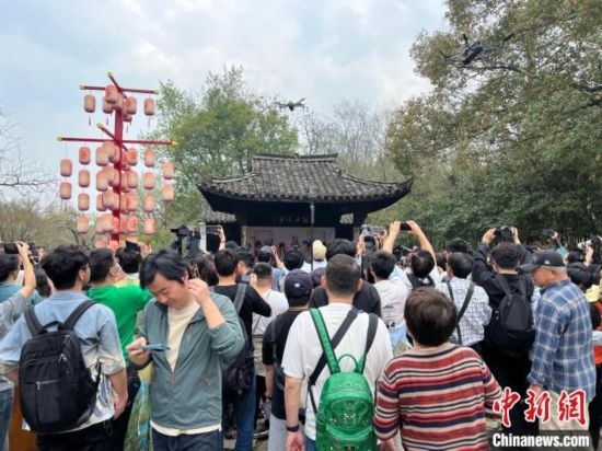 當(dāng)天,伴隨著美妙的音樂(lè),“十二花神”乘坐氦氣球沐風(fēng)而上“天女散花”,繽紛的花瓣隨風(fēng)飄灑,將象征著百花齊放、春滿人間的美好祝愿灑向人間。隨后,“十二花神”登上宋韻花船,沿著西溪濕地蜿蜒的河道緩緩巡游,唯美浪漫的畫面為游客獻(xiàn)上了一場(chǎng)視覺盛宴。