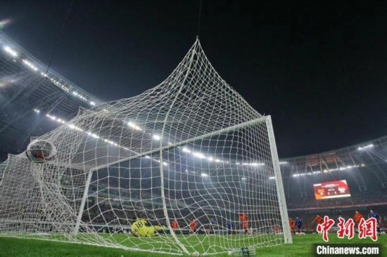 3月26日晚,在天津舉行的2026年國際足聯(lián)世界杯亞洲區(qū)預(yù)選賽36強(qiáng)賽C組比賽中,中國隊(duì)主場(chǎng)4比1戰(zhàn)勝新加坡隊(duì)。圖為中國隊(duì)球員費(fèi)南多在比賽中主罰點(diǎn)球破門。佟郁 攝