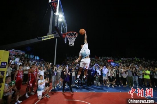 2023年8月2日晚,全國和美鄉(xiāng)村籃球大賽(村BA)東北賽區(qū)揭幕戰(zhàn)在天津市薊州區(qū)郭家溝村開賽。圖為比賽現(xiàn)場(chǎng)。佟郁 攝
