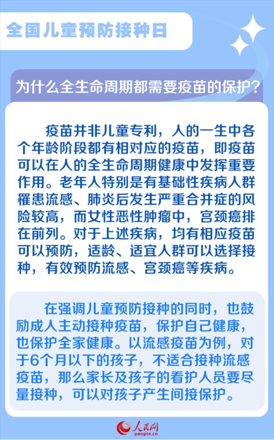 2024年4月25日為我國第38個(gè)“全國兒童預(yù)防接種日”,宣傳主題為“共同行動 接種疫苗 為全生命周期護(hù)航”。溫州醫(yī)科大學(xué)附屬第二醫(yī)院、育英兒童醫(yī)院兒童預(yù)防接種咨詢門診副主任醫(yī)師余剛在接受采訪時(shí)表示,對個(gè)人來說,全生命周期的健康保護(hù)是從接種第一針疫苗開始。
