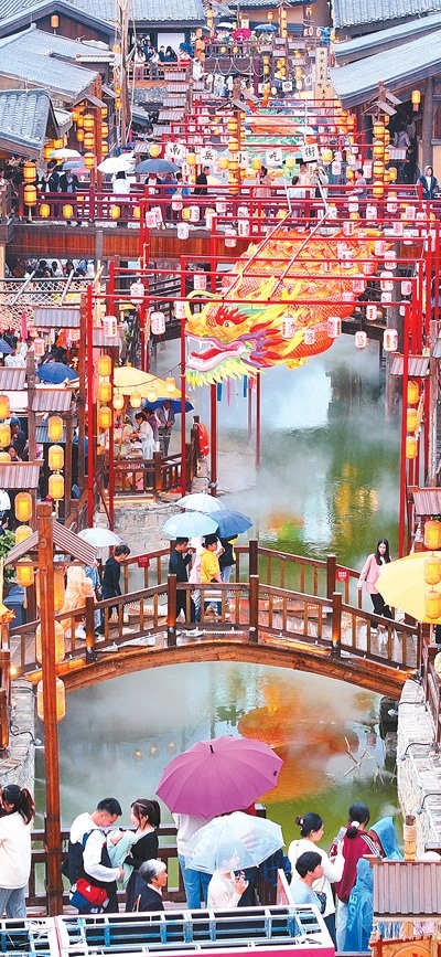 龍門浩老街上,幾名外地游客沿著青石臺階漫步至老街最高點(diǎn)——攬?jiān)屡_,遠(yuǎn)眺渝中半島。這條位于重慶市南岸區(qū)南濱路中段的老街,面朝長江,背依南山,開埠文化、巴渝文化等文化底蘊(yùn)深厚。近年來,經(jīng)過保護(hù)與修繕,這里不僅恢復(fù)了歷史風(fēng)貌,還增添了現(xiàn)代時尚氣息。古色古香的街道兩旁,新潮的商鋪、餐館和咖啡館為市民游客休閑購物提供便利和全新體驗(yàn)。“感受時光交錯的美妙”,成為這里的一大魅力。數(shù)據(jù)顯示,自發(fā)展全域旅游以來,龍門浩老街所在的龍門浩街道已接待游客近4000萬人次,實(shí)現(xiàn)旅游收入276.8億元,龍門浩老街還成功創(chuàng)建第二批國家級夜間文旅消費(fèi)聚集區(qū)。