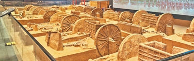 岳占偉1997年就來(lái)到了安陽(yáng)工作站,是實(shí)驗(yàn)室考古的推動(dòng)者,他隆重向大家推薦“車轔轔馬蕭蕭——殷墟車馬遺跡展”。這是一次性展出商代馬車最多的展廳,從殷墟歷年出土的上百個(gè)車馬坑中選擇了23駕車馬放在一起矩陣式展示。殷墟絕大部分都是兩馬拉車的形制,包括帶著長(zhǎng)長(zhǎng)儀仗桿的儀仗馬車、出行田獵的乘車、隨葬兵器的戰(zhàn)車等?!爸袊?guó)最早的成熟馬車出現(xiàn)在晚商。上世紀(jì)30年代在安陽(yáng)曾發(fā)現(xiàn)過(guò)幾座殷墟文化時(shí)期的車馬坑,但車子的木質(zhì)均已腐朽,僅剩下零散的車馬銅飾。1950年,夏鼐所長(zhǎng)在輝縣琉璃閣發(fā)掘到戰(zhàn)國(guó)時(shí)代的一座大型車馬坑,和技師一起搞清楚了車子的木質(zhì)結(jié)構(gòu),復(fù)原了車子的原狀。這項(xiàng)神奇的技術(shù)也成為我們的傳家寶,希望觀眾未來(lái)有可能在展廳看到考古工作者發(fā)掘車馬坑的過(guò)程。”