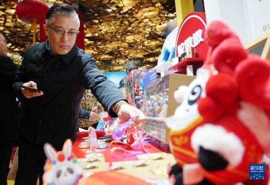 11月19日,參觀(guān)者在拍攝“蛇墩墩”系列新品。新華社記者 張晨霖 攝