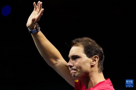 這是2024年11月20日,在西班牙馬拉加舉行的2024戴維斯杯男子網球團體賽四分之一決賽后,西班牙隊選手納達爾向觀眾致意。新華社記者 孟鼎博 攝