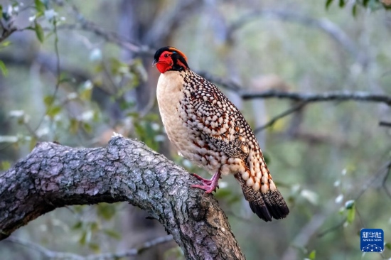 3月7日,福建省建甌市小橋鎮(zhèn),一只黃腹角雉在樹(shù)上停歇。