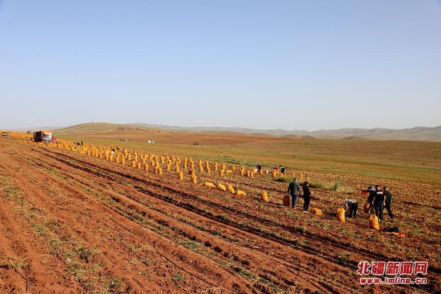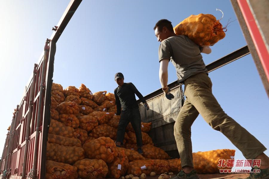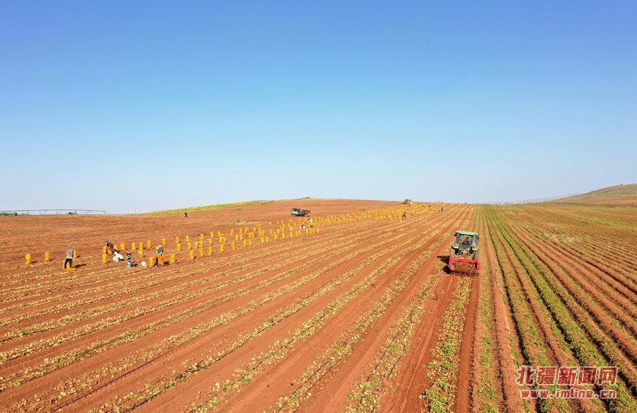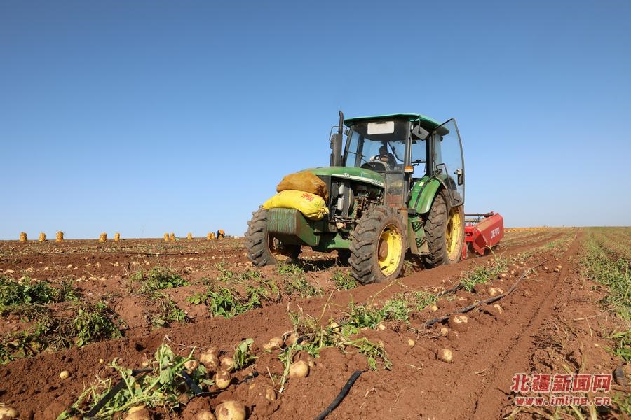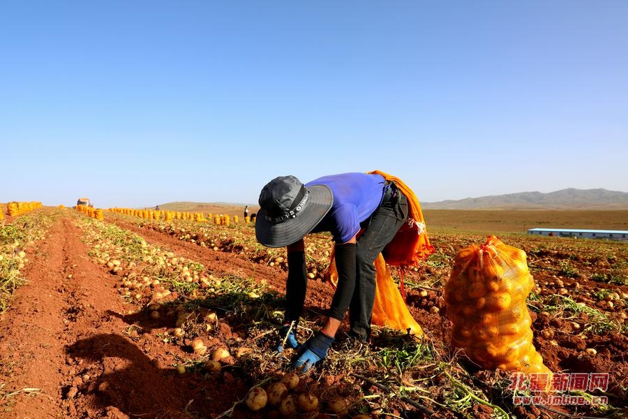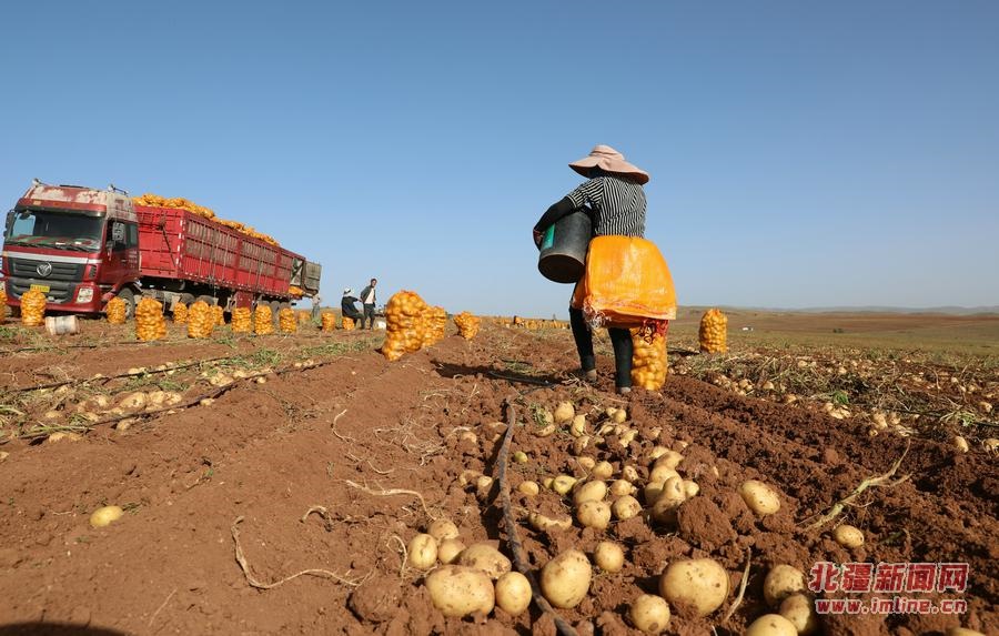 9月18日,呼和浩特市武川縣大魚得水溝村種植戶張永在和霍家溝村種植戶霍飛正在收獲土豆。