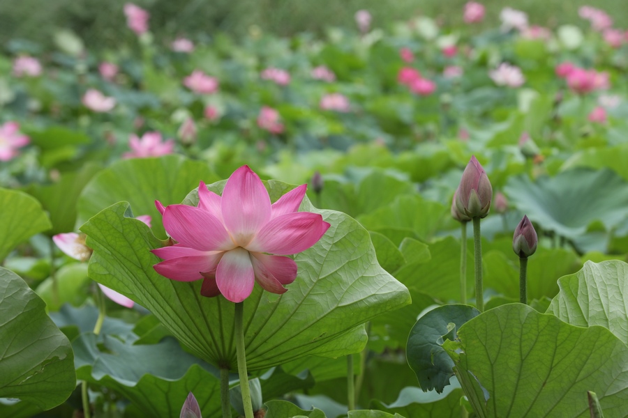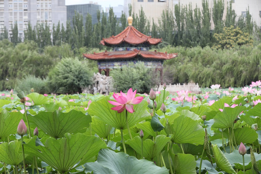 呼和浩特:青城公園荷花進入最佳觀賞期