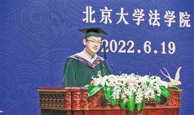 “畢業(yè)之后,我將回到家鄉(xiāng),為祖國北疆發(fā)展奉獻(xiàn)自己的青春力量?!痹诒本┐髮W(xué)法學(xué)院畢業(yè)生歡送典禮上,賈平煊代表本屆畢業(yè)生發(fā)言。