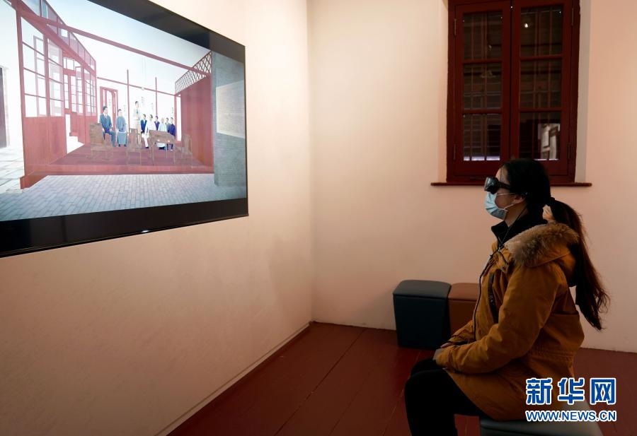 1月18日,參觀者通過(guò)VR設(shè)備了解進(jìn)步青年們?cè)谂f址內(nèi)活動(dòng)情況。新華社記者 劉穎 攝