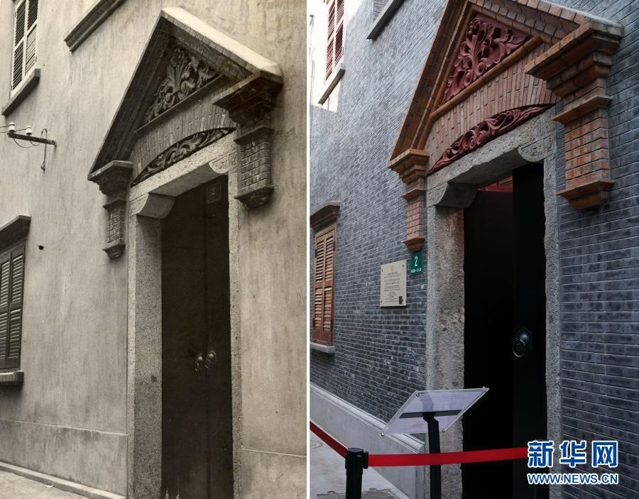 拼版照片:左圖是法租界老漁陽(yáng)里2號(hào)的歷史照片(上海市檔案館供圖);右圖是1月18日拍攝的南昌路100弄2號(hào)(新華社記者劉穎攝)。新華社發(fā)
