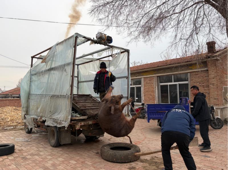 吃殺豬菜一向講求男女分工,家中的男子負責抓豬屠宰,女性們則負責后續(xù)的備菜烹煮工作。男人們穿上厚實的棉襖,呵著白氣走向豬圈,用早已準備好的繩索,麻利地將豬的四肢捆扎結(jié)實。隨后,幾人合力將豬抬到宰豬的車上,王國春深吸一口氣,拿起殺豬刀,對準豬的脖頸,動作干脆利落。鮮紅的豬血順著事先準備好的大盆緩緩流淌,不一會兒就接了滿滿一盆。殺完豬,男人們顧不上休息,就趕忙用滾燙的開水給豬褪毛,鐵刮子在豬身上來回刮擦,發(fā)出“唰唰”的聲響,不一會兒,原本黑乎乎的豬就變得白白凈凈。緊接著,他們立刻將豬開膛破肚,把內(nèi)臟分門別類地整理好,豬頭、豬蹄也被仔細地清洗干凈,準備著后續(xù)的處理?! ?/p>