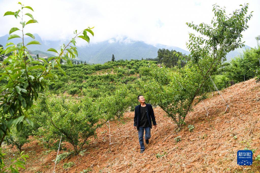 5月19日,重慶市巫山縣曲尺鄉(xiāng)權(quán)發(fā)村村民在查看脆李生長(zhǎng)情況。新華社記者 王全超 攝