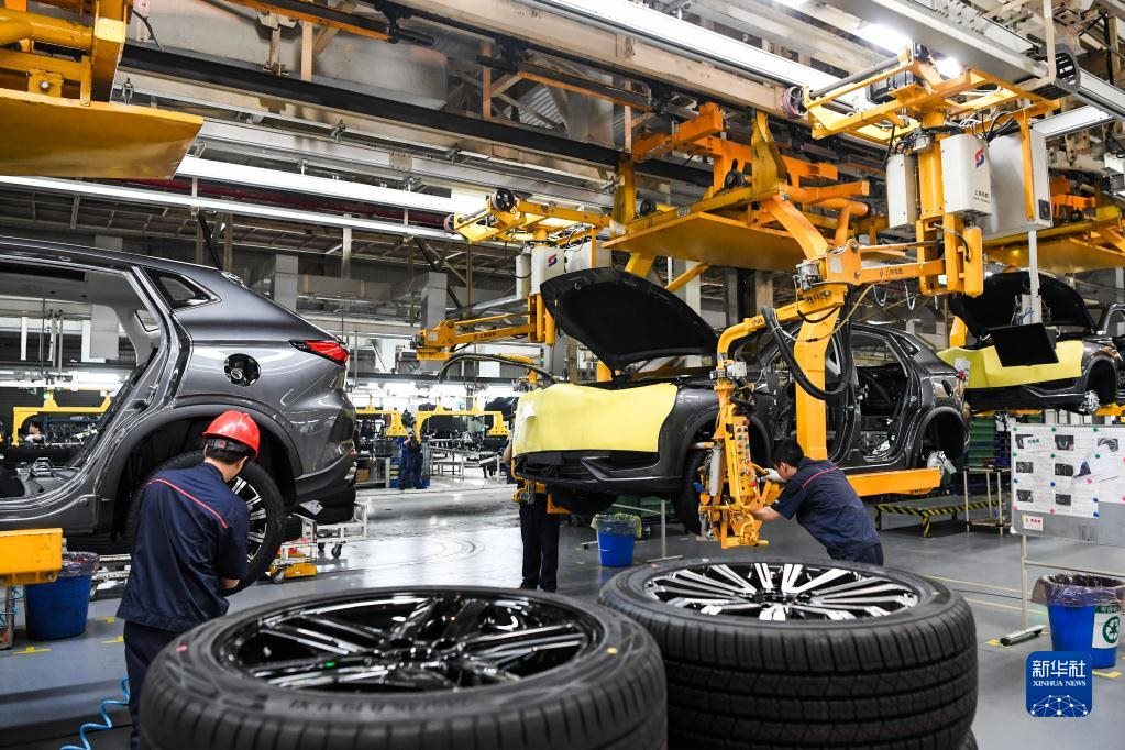這是6月16日在重慶市兩江新區(qū)拍攝的長(zhǎng)安汽車(chē)兩江智能工廠作業(yè)現(xiàn)場(chǎng)。新華社記者 王全超 攝